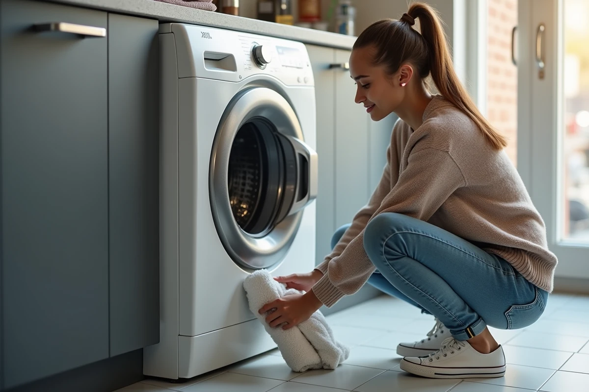 Pour augmenter la protection, une astuce simple : ajoutez plusieurs serviettes éponge blanches ou claires dans la machine, jamais colorées pour éviter la décoloration. Elles amortissent les impacts et maintiennent la stabilité de l’ensemble durant le cycle.